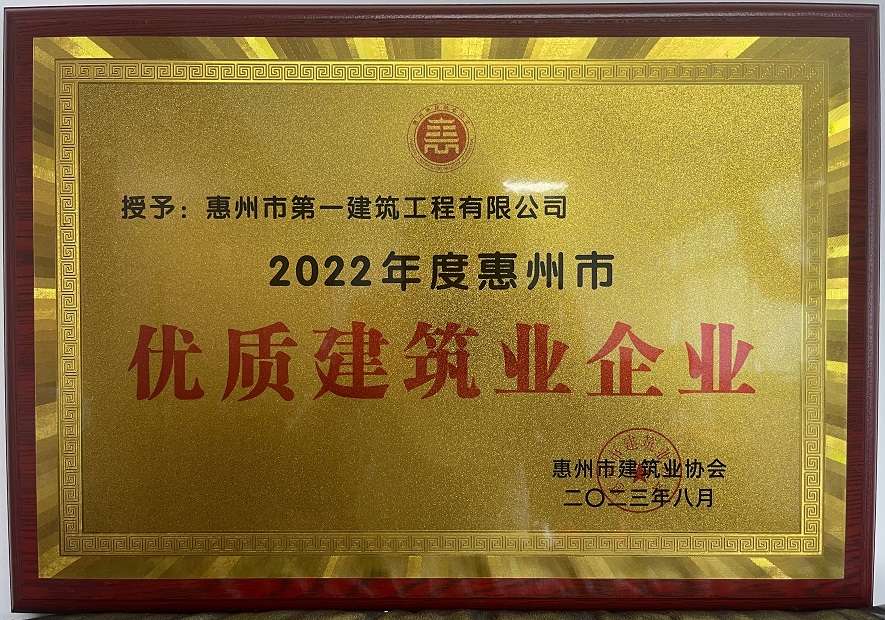 熱烈祝賀我司榮獲“2022年度惠州市優質建筑業企業”