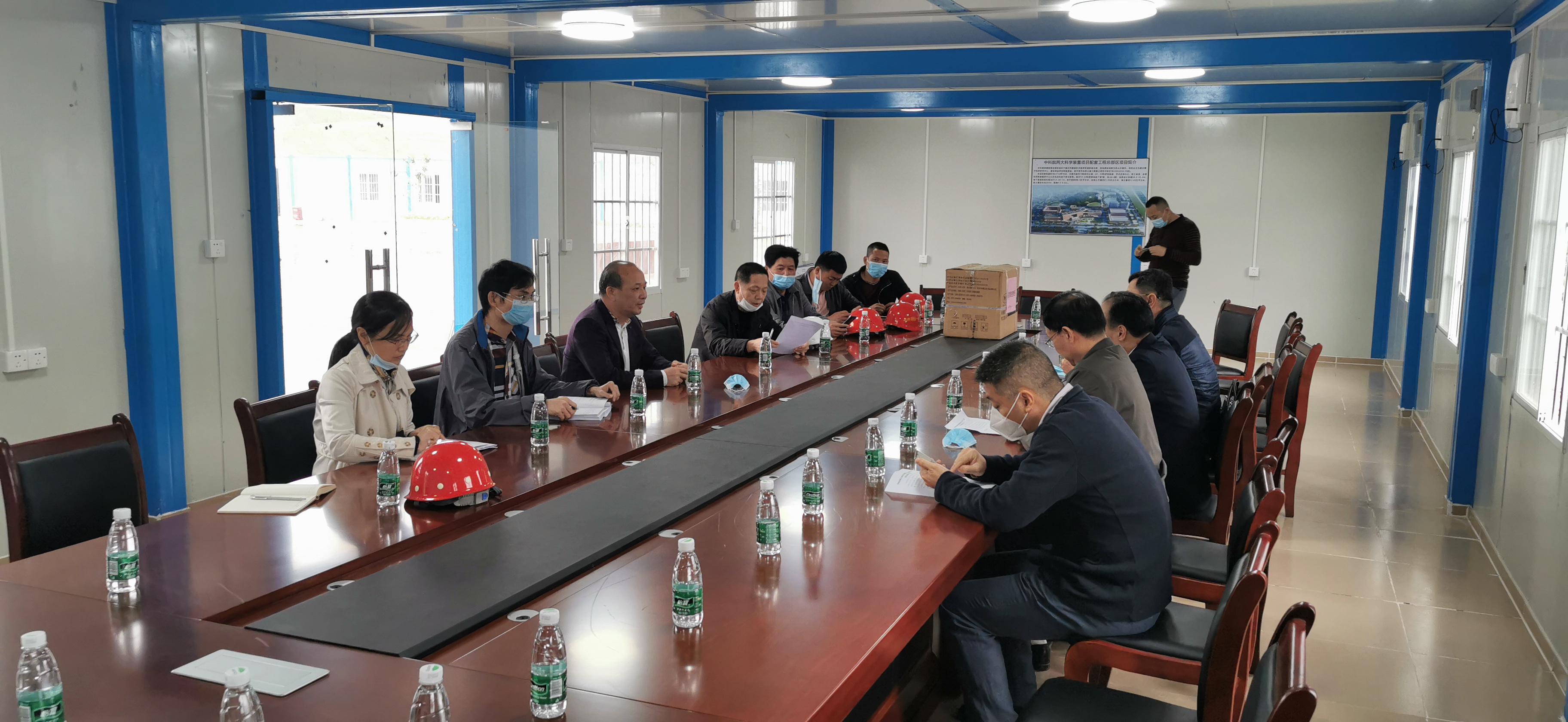 2020年3月31日下午,市住建局商副局長(zhǎng)、建筑市場(chǎng)科利主任、市代建局陳局長(zhǎng)、柏副局長(zhǎng)及建筑協(xié)會(huì)任會(huì)長(zhǎng)一行人帶隊(duì)到我司中科院兩大科學(xué)裝置項(xiàng)目配套工程總部區(qū)進(jìn)行疫情期間復(fù)工復(fù)產(chǎn)督導(dǎo)工作,考察了解該項(xiàng)目的疫情防控工作及企業(yè)復(fù)工復(fù)產(chǎn)情況。督導(dǎo)組強(qiáng)調(diào),要嚴(yán)格落實(shí)疫情防控主體責(zé)任,抓實(shí)抓細(xì)各項(xiàng)防控措施,確保落實(shí)到每一個(gè)人、每一個(gè)場(chǎng)所、每一個(gè)環(huán)節(jié),做到萬(wàn)無(wú)一失。希望企業(yè)堅(jiān)定信心,在確保疫情防控措施落實(shí)和安全生產(chǎn)前提下,科學(xué)安排施工計(jì)劃,盡快恢復(fù)正常生產(chǎn)經(jīng)營(yíng)秩序。并贈(zèng)送了一批防疫物資支持施工企業(yè)復(fù)工復(fù)產(chǎn)。