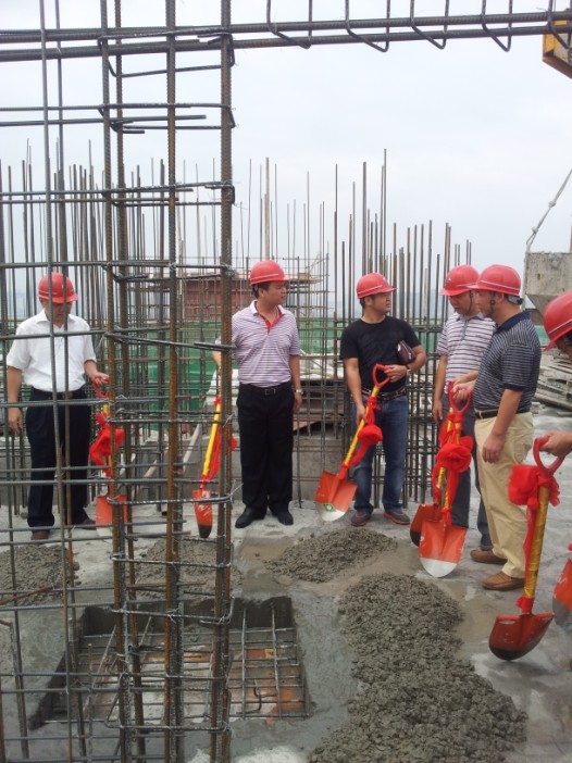 ? ? ? ? ? ? ? ? ? ? ? ? ? ? ? ? ? ? ? 陳總與各參建單位負(fù)責(zé)人參加純棉時(shí)代封頂儀式