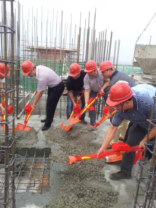 ? ? ? ? ? ? ? ? ? ? ? ? ? ? ? ?陳總與開發(fā)商楊董事長參加純棉時(shí)代封頂儀式